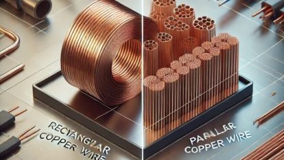 平角銅線は断面が矩形であるため、巻いた際に隙間が少なくなり、コイルの密度を高めることができます。